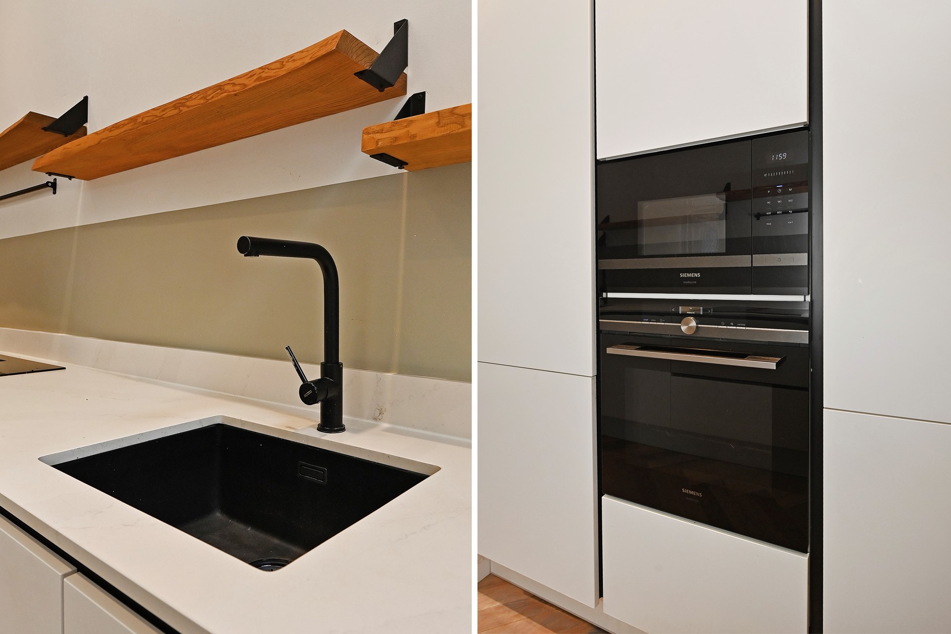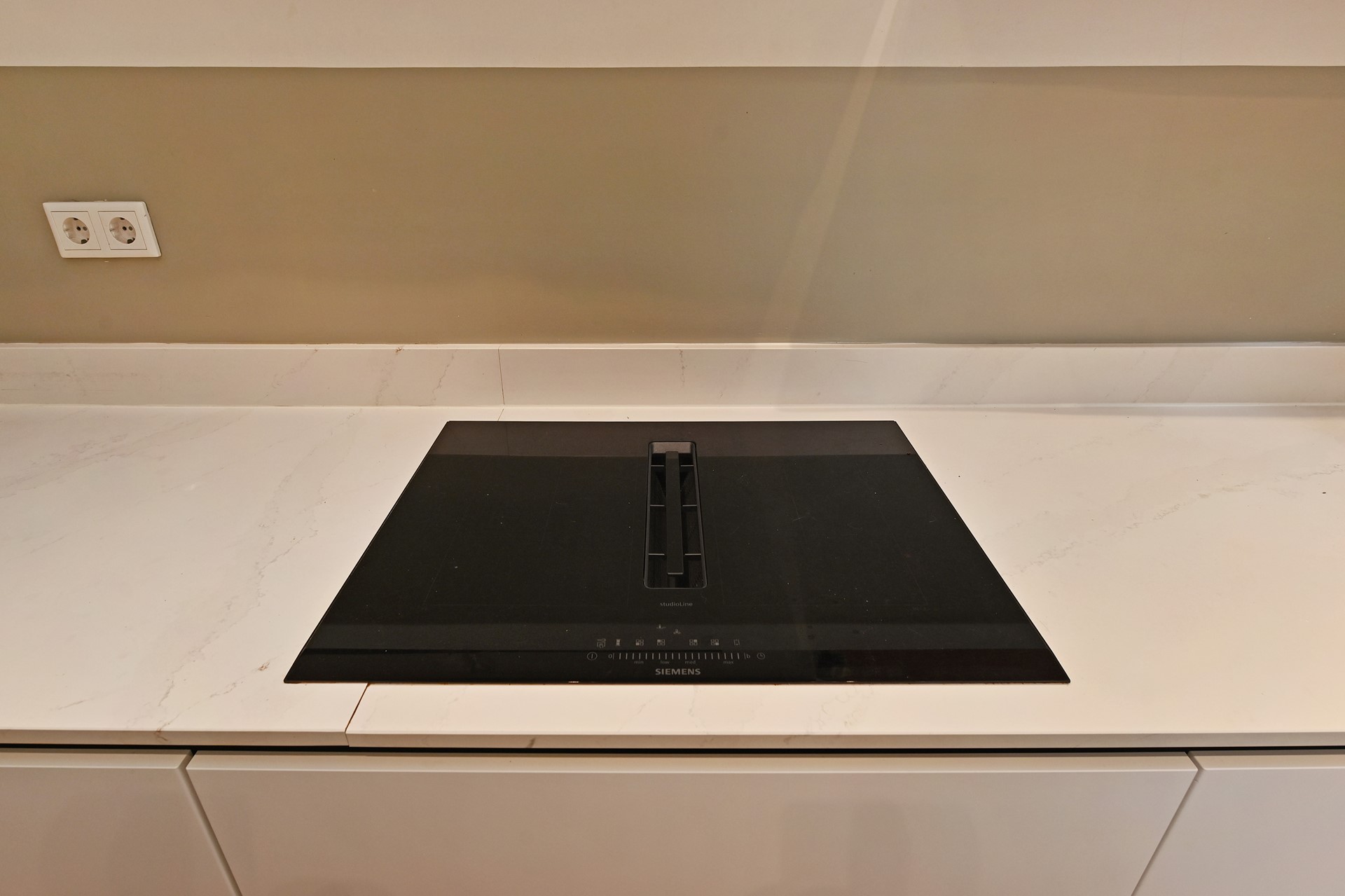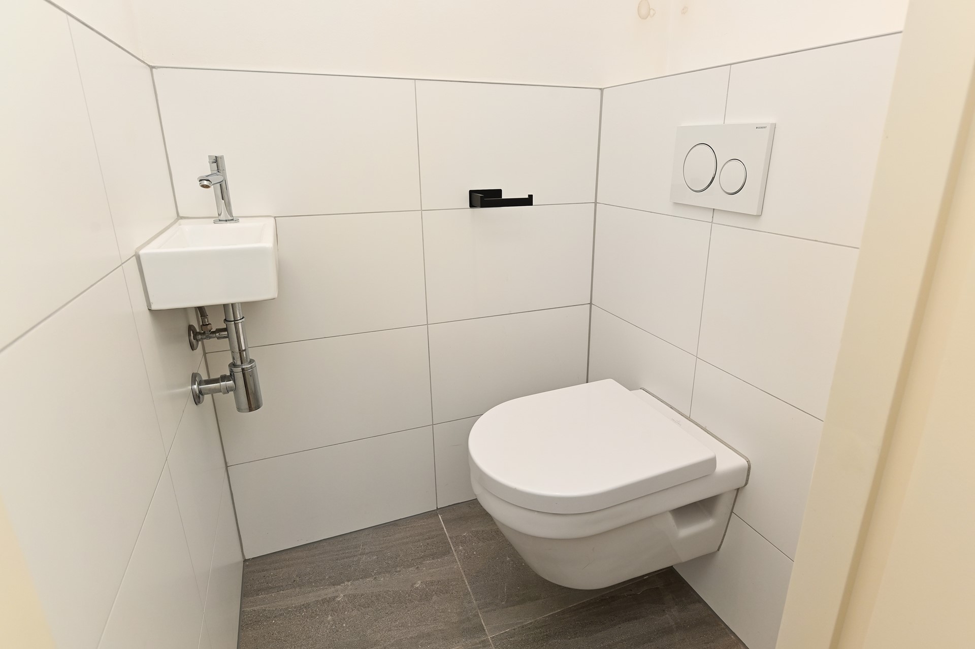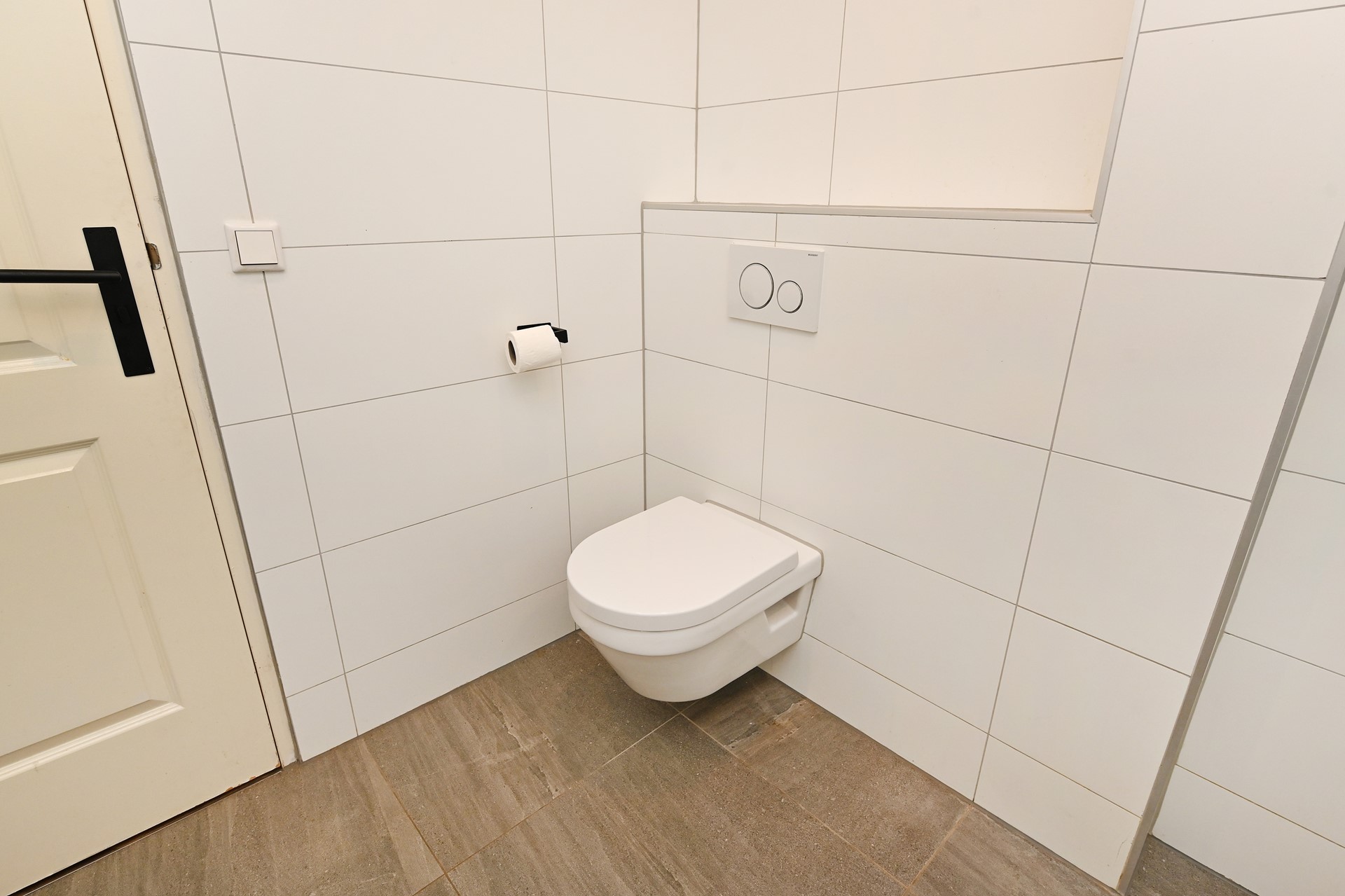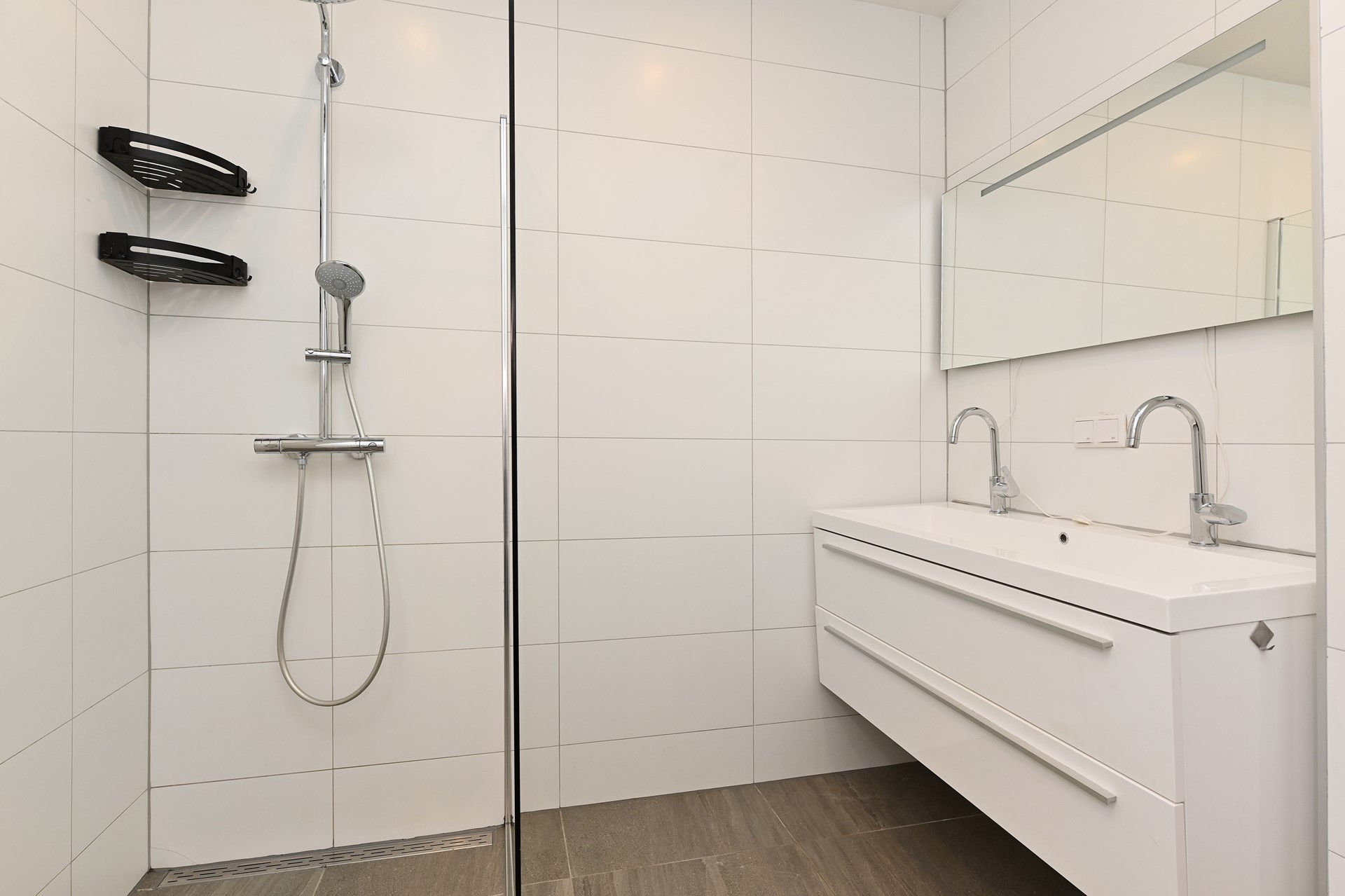 Entree op straatniveau met toegang tot het tochtportaal (3,9 m2) en de hal (6,6 m2), waar zich een apart toilet met fontein bevindt en een aparte kast voor het opstellen van een wasmachine/droger. Vanuit de hal tevens toegang tot alle vertrekken: de ruime eerste slaapkamer aan de voorkant van de woning (gelegen op de hoek van circa 16,6 m2), tweede slaapkamer van circa 8 m2, badkamer met tweede toilet, douche en dubbele wastafel met spiegel (5,7 m2). Vanuit de hal tevens toegang tot de lichte en ruime woonkamer (27,4 m2) met toegang tot de open keuken. De keuken is voorzien van alle moderne gemakken, onder andere: een vaatwasser, combi/oven, koelkast en vriezer, inductiekookplaat en meer dan genoeg opbergruimte. In de keuken bevindt zich ook de opstelplaats voor de cv-ketel.