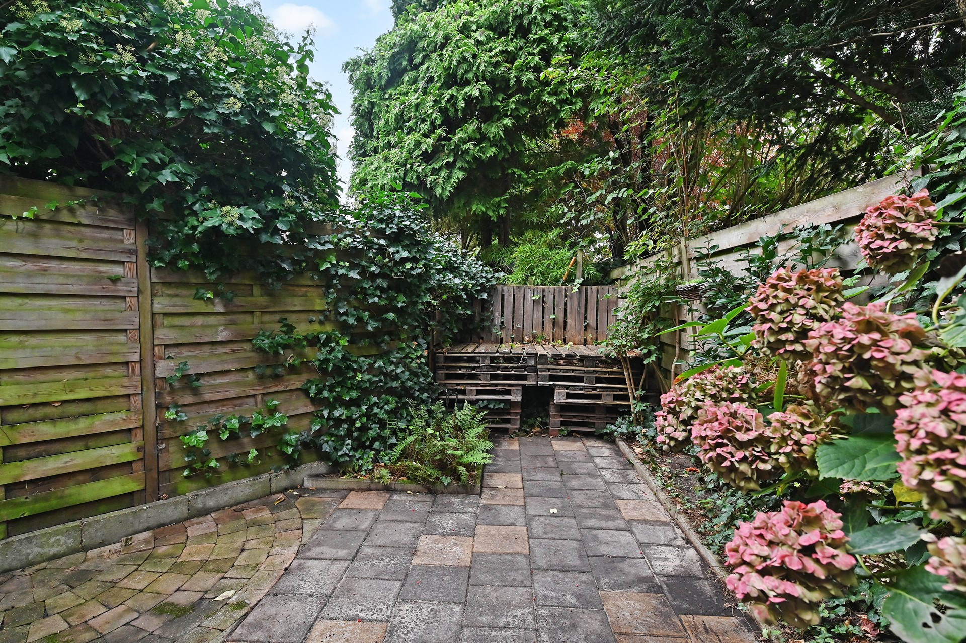 Aan de achterkant van de woning is de derde slaapkamer te vinden (10,1 m2) met inbouwkast (2,3 m2). Vanuit de keuken is er toegang tot de tuin/patio waar potentiële kopers een zeer gezellig verblijf kunnen creëren. Zeer handig is ook de aparte berging (2,6 m2), waar eventueel spullen/fietsen kunnen worden opgeslagen.